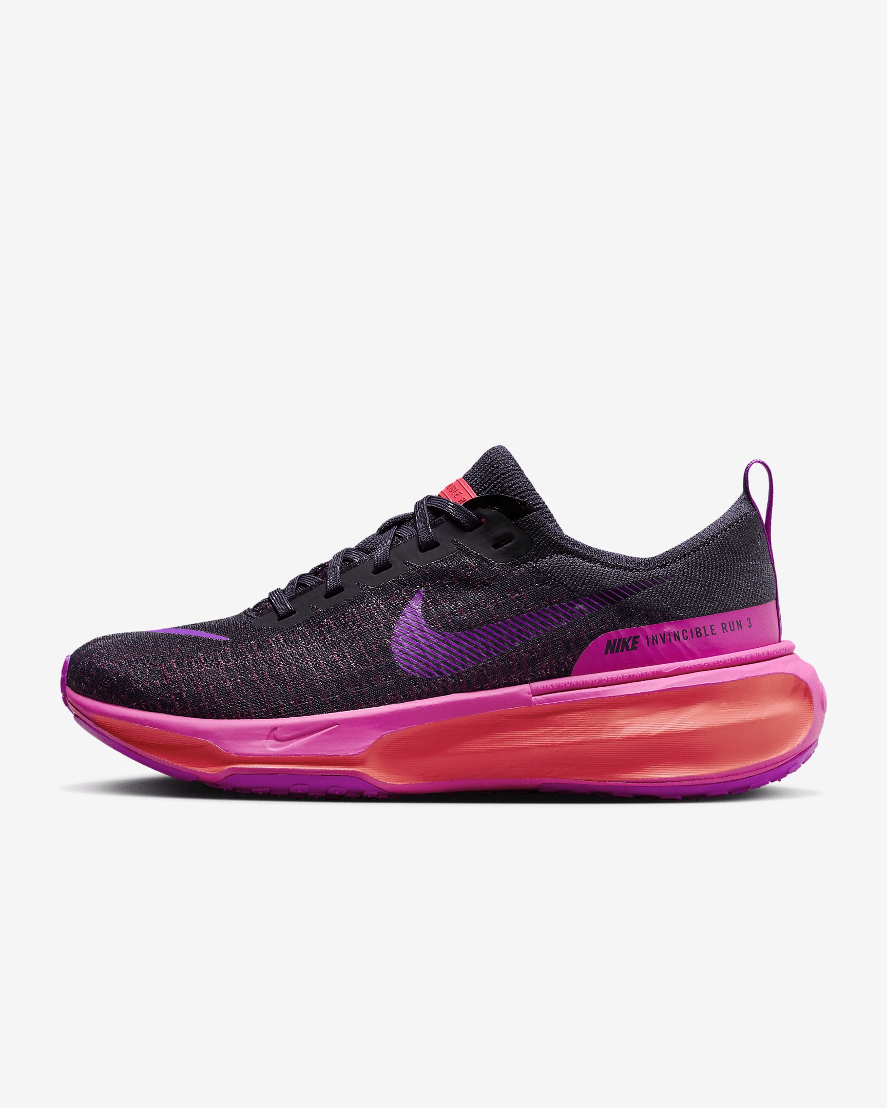 Maximum cushioning provides our most comfortable ride for everyday runs. Experience a breathable Flyknit upper and the robust platform of lightweight ZoomX foam that softens impact. Plus, the midsole of this model is wider and taller than the last for even more cushioned comfort. Benefits - Breathable Flyknit upper for a secure fit without bulk - High and wide ZoomX foam midsole cushions on impact - Waffle outsole for durable traction - Extra cushioning around contact points around the heel and tongue - What’s New? A wider and taller ZoomX foam midsole for maximum comfort and sleek all-around design updates. Product Details - Weight: Approx. 258g (Women’s size 8) - Heel-to-toe drop: 9mm - Not intended for use as Personal Protective Equipment (PPE) - Shown: Dark Raisin/Hot Punch/Laser Fuchsia/Hyper Violet - Style: DR2660-501