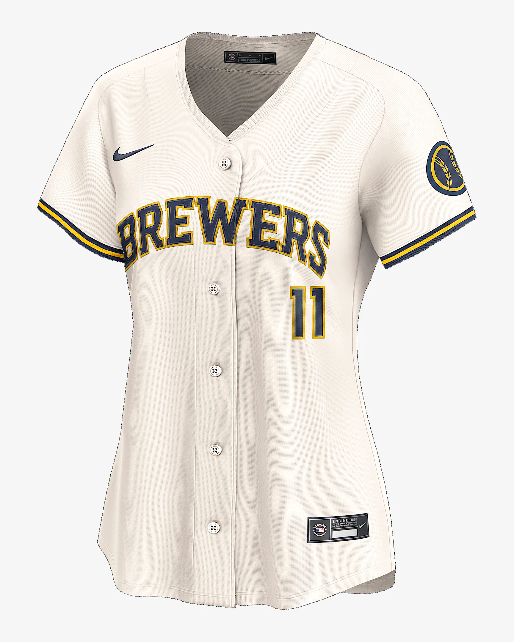 Designed with an authentic look, this Jackson Chourio Jersey is inspired by the uniforms your Milwaukee Brewers wear on the field. The sweat-wicking, double-knit mesh fabric helps deliver a breathable and comfortable feel all season. Benefits - Nike Dri-FIT ADV technology combines moisture-wicking fabric with advanced engineering and features to help you stay dry and comfortable. - Vapor Premier chassis is a breathable, high-performance fabric that helps improve mobility and moisture management. - Recycled twill details with faux stitch name and number help provide a more authentic look and feel. Product Details - Heat-applied MLB Batterman logo - Tagless neck label - Woven jock tag - 100% recycled polyester - Machine wash - Imported - Shown: Cream - Style: LM2WMZHOMZ9-71E