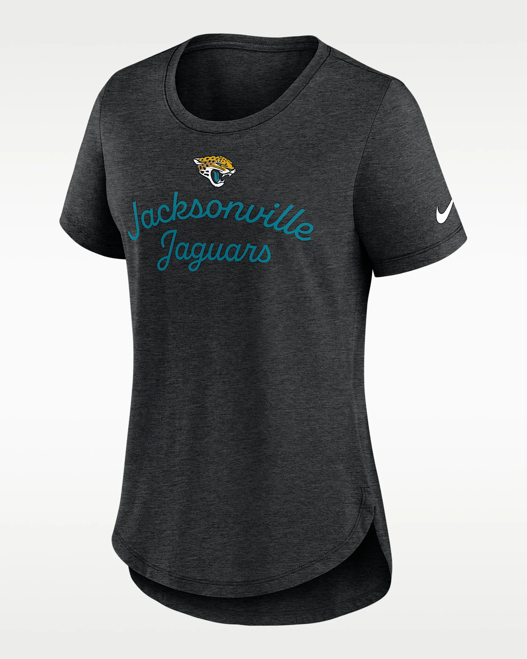 Made with soft tri-blend material, this Jacksonville Jaguars Script T-Shirt features a heathered design that accentuates the team details to help you comfortably support your favorite NFL squad. Product Details - Drop-tail hem - 50% polyester/25% cotton/25% rayon - Machine wash - Imported - Shown: Black - Style: NKMV00H9N-EVH