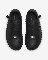 Inspired by traditional crafting and a desire to reintroduce the human element into shoe construction, Nike and Jacquemus created the J Force 1. Notes were taken from Nike Considered, the early-2000s project known for using minimal glue as a means to lessen the environmental impact of footwear production. All of this hypothetical influence resulted in a shoe that looks equally at home in an art museum as it does in the outside world. Benefits - Modified Air Force 1 upper is handwoven to the sole, reducing the use of glue. - Inverted logos on the outsole imprint correctly when you lift your foot. - Textured webbing system is structurally sound and visually striking. Product Details - Foam midsole - Rubber outsole - Shown: Black/Black/Anthracite/Metallic Silver - Style: DR0424-001