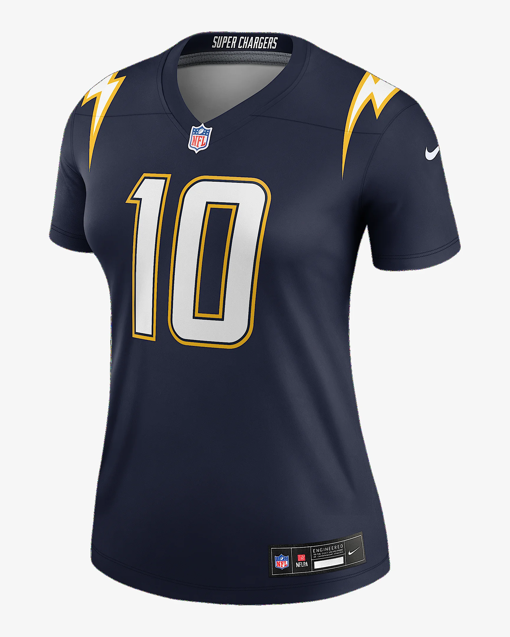 This Justin Herbert Jersey delivers an authentic touch on game day with official team details and a tribute to your favorite player. Sweat-wicking technology helps provide consistent comfort as you rep the Los Angeles Chargers. Benefits - Nike Dri-FIT technology moves sweat away from your skin for quicker evaporation, helping you stay dry and comfortable. - Fully sublimated double pique fabric helps provide lightweight comfort. Product Details - Streamlined fit - NFL shield at V-neck - Tagless neck label - Woven jock tag - Machine wash - Imported - Shown: Navy - Style: 94NW0FAK97F-9Z3