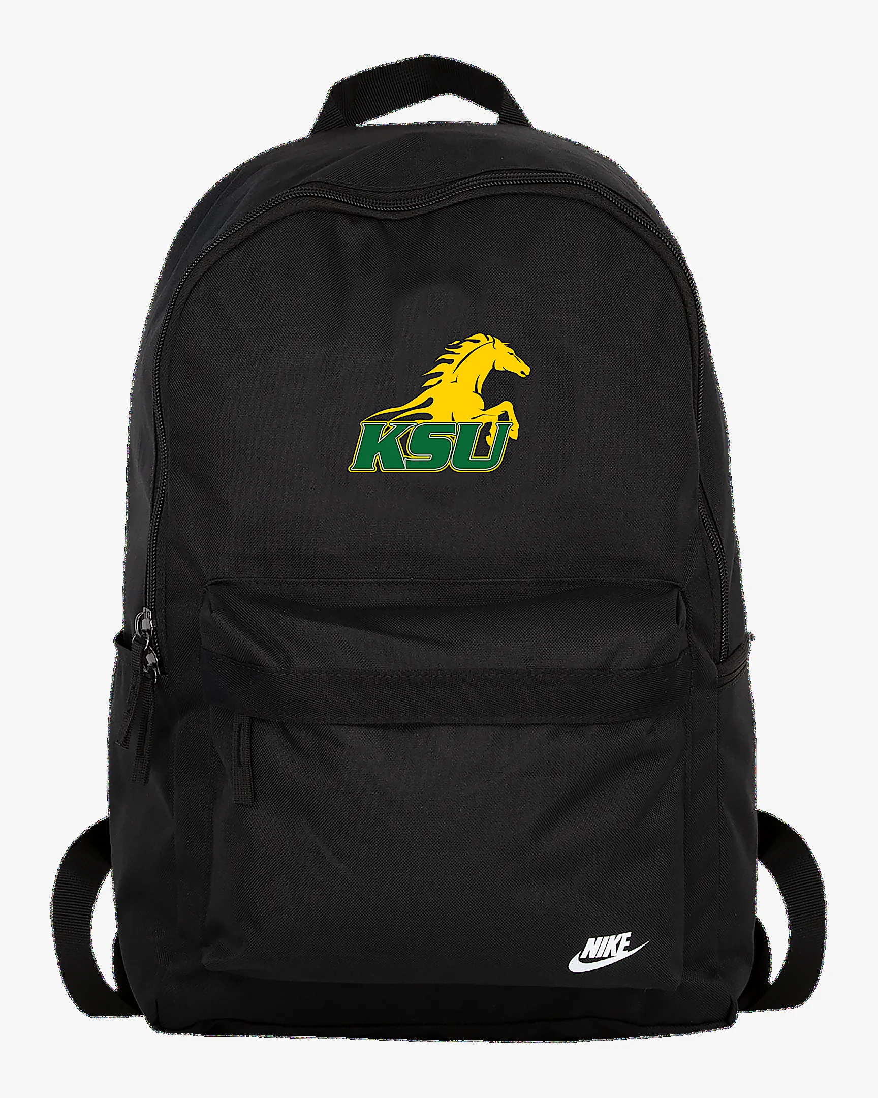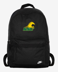 The Thorobreds hold a unique place within the cultural fabric and tapestry of Kentucky State, personifying the promise of representation for generations to come. Honor your school—and easily take all your gear to go—with this roomy Heritage backpack. Benefits - This style celebrates and commemorates an institution enacting positive change for the next generation of scholars, athletes and leaders of society, specifically those attending Historically Black Colleges and Universities (HBCUs). - Densely woven polyester provides heavyweight support for all your things. - Zipper compartments help keep you and your gear organized. - Padded shoulder straps and back help provide extra comfort as you go about your day. Product Details - Haul handle - 100% polyester - Hand wash - Imported - Shown: Black - Style: A11956HBCU-KSU