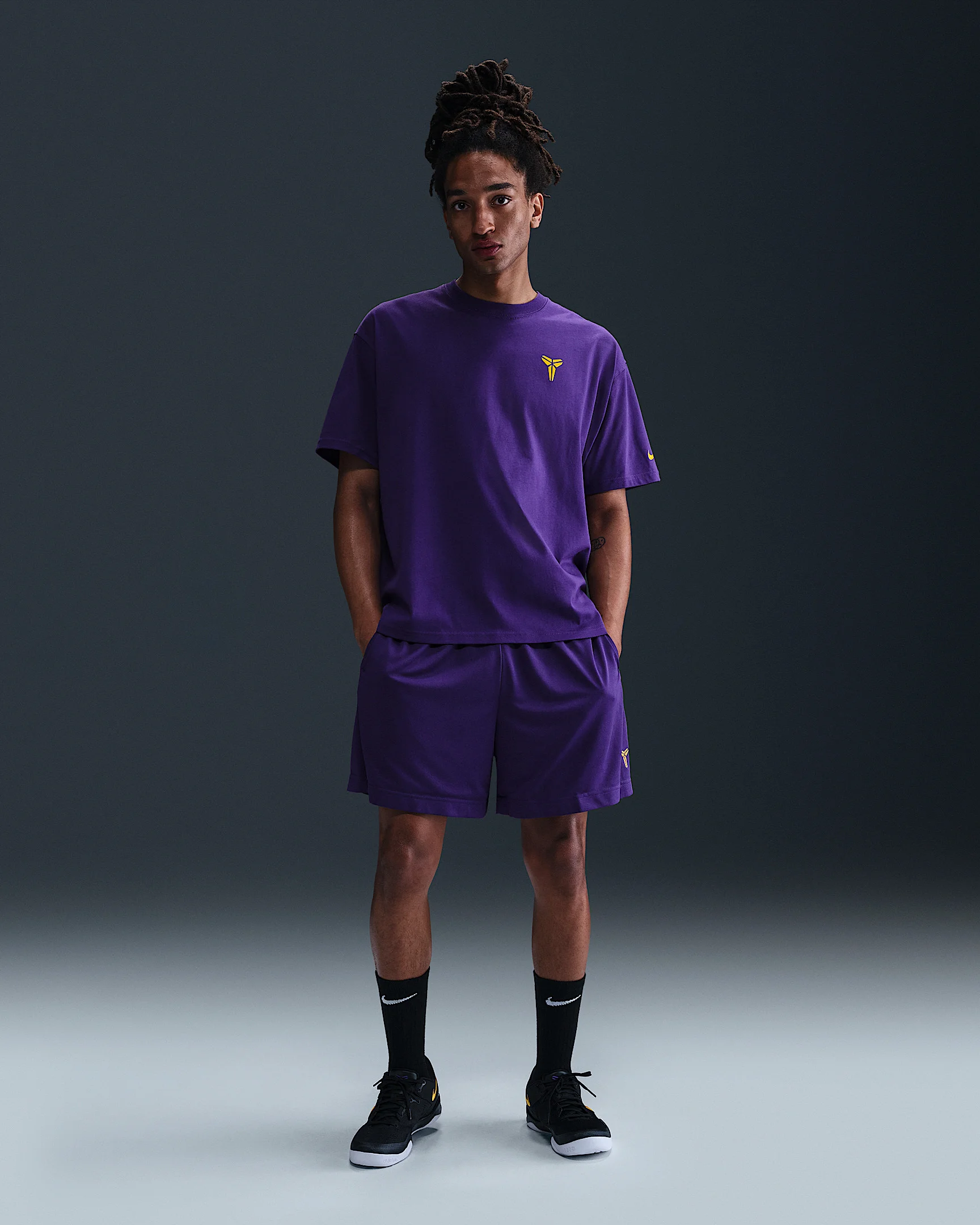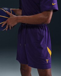 These Kobe 6” basketball shorts pair a premium dual-layer build with sweat-wicking Dri-FIT technology. Soft breathable knit with mesh lining helps keep you cool. Benefits - Nike Dri-FIT technology moves sweat away from your skin for quicker evaporation, helping you stay dry and comfortable. - Elastic waistband with drawcord provides a secure fit. Product Details - Side pockets - Embroidered Kobe Sheath logo - Embroidered Swoosh logo - Body/Lining: 100% polyester - Machine wash - Imported - Shown: Court Purple/University Gold/University Gold - Style: HJ8103-547 SIZE & FIT Model is wearing size M and is 6′0″183cm Standard fit: easy and traditional
