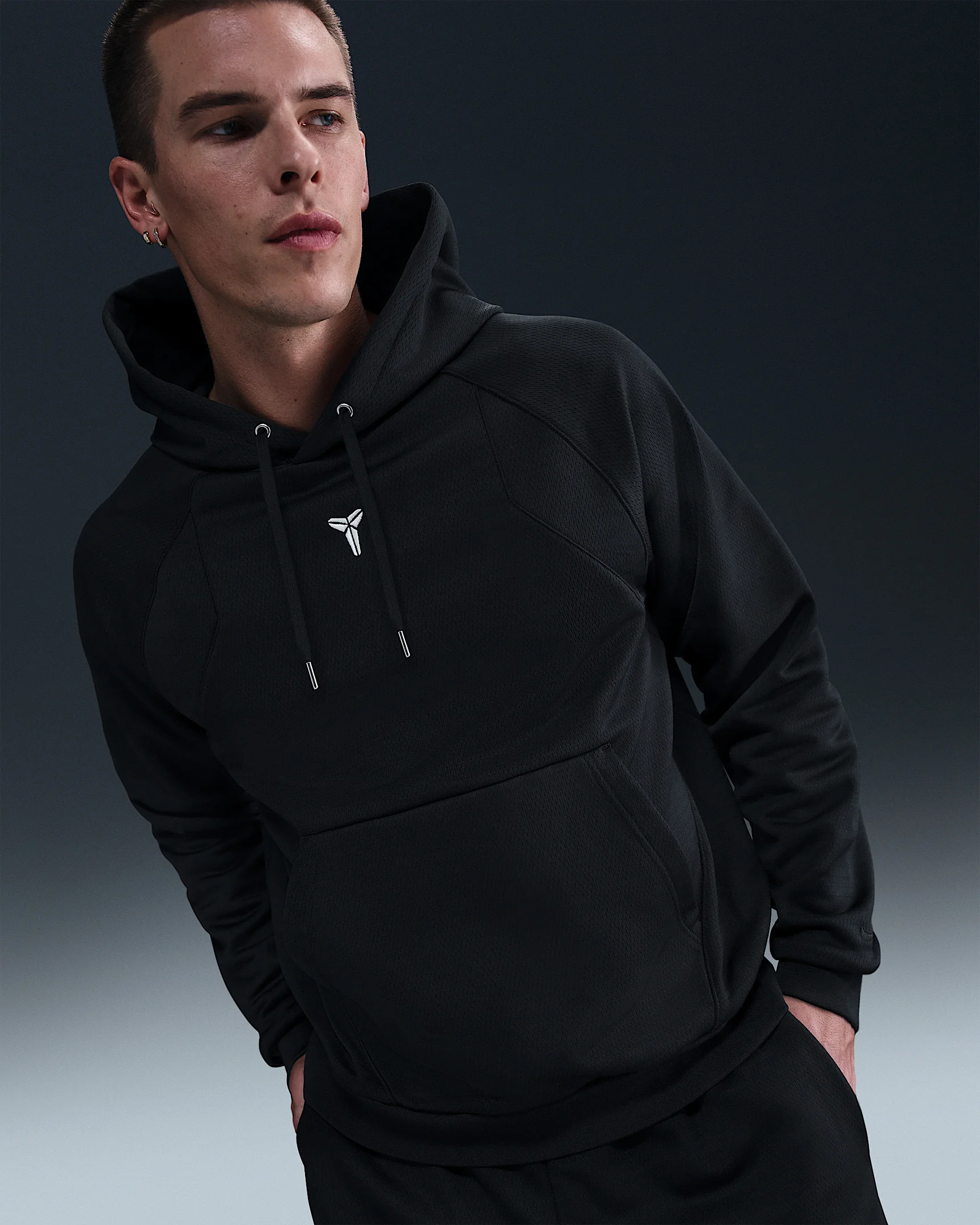 This Kobe Therma-FIT hoodie has a premium dual-layer build featuring a mesh-like shell and brushed interior that’s built to keep you warm on and off the court. Product Details - Drawcords with metal tips - Ribbed cuffs and hem - Embroidered Swoosh logo - Body: 100% polyester - Machine wash - Imported - Shown: Black/Black/White - Style: HJ8109-010 SIZE & FIT Model is wearing size M and is 6′1″186cm Big & Tall model is wearing size 3XL and is 6'5"196cm Standard fit: easy and traditional
