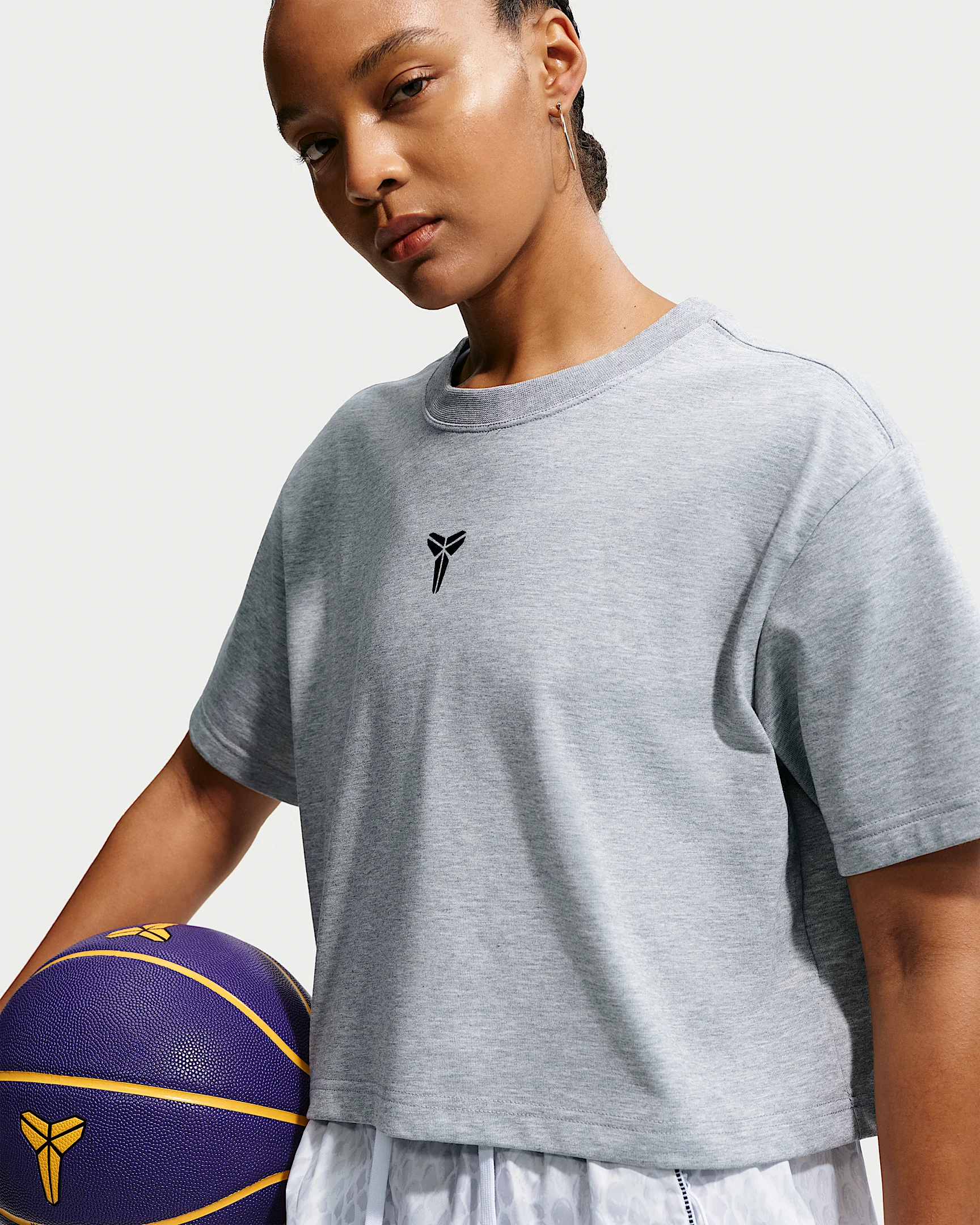 Cropped and court ready. This roomy Kobe tee wicks sweat and is made with soft, premium fabric for a clean look. Benefits - Nike Dri-FIT technology moves sweat away from your skin for quicker evaporation, helping you stay dry and comfortable. Product Details - 63% polyester/37% cotton - Machine wash - Imported - Shown: Dark Grey Heather - Style: IO8289-063 SIZE & FIT Model is wearing size S and is 5′7″170cm Loose fit: roomy and relaxed