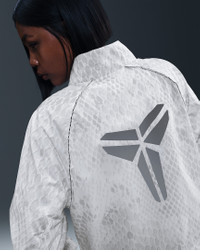 Move with mamba energy. This lightweight, breathable jacket has a snakeskin print and reflective details that give your look a bold edge. An adjustable hem lets you cinch it up for a cropped look or keep it loose for a roomy feel. Benefits - Adjustable hem lets you personalize your style. - Mesh zip pockets offer secure lightweight storage. Product Details - Elastic cuffs - Reflective Kobe Sheath logo on front and back - Swoosh logo on arm - Body/Lining: 100% polyester - Machine wash - Imported - Not intended for use as Personal Protective Equipment (PPE) - Shown: White - Style: IB2718-100 SIZE & FIT Model is wearing size S and is 5′7″170cm Standard fit: easy and traditional