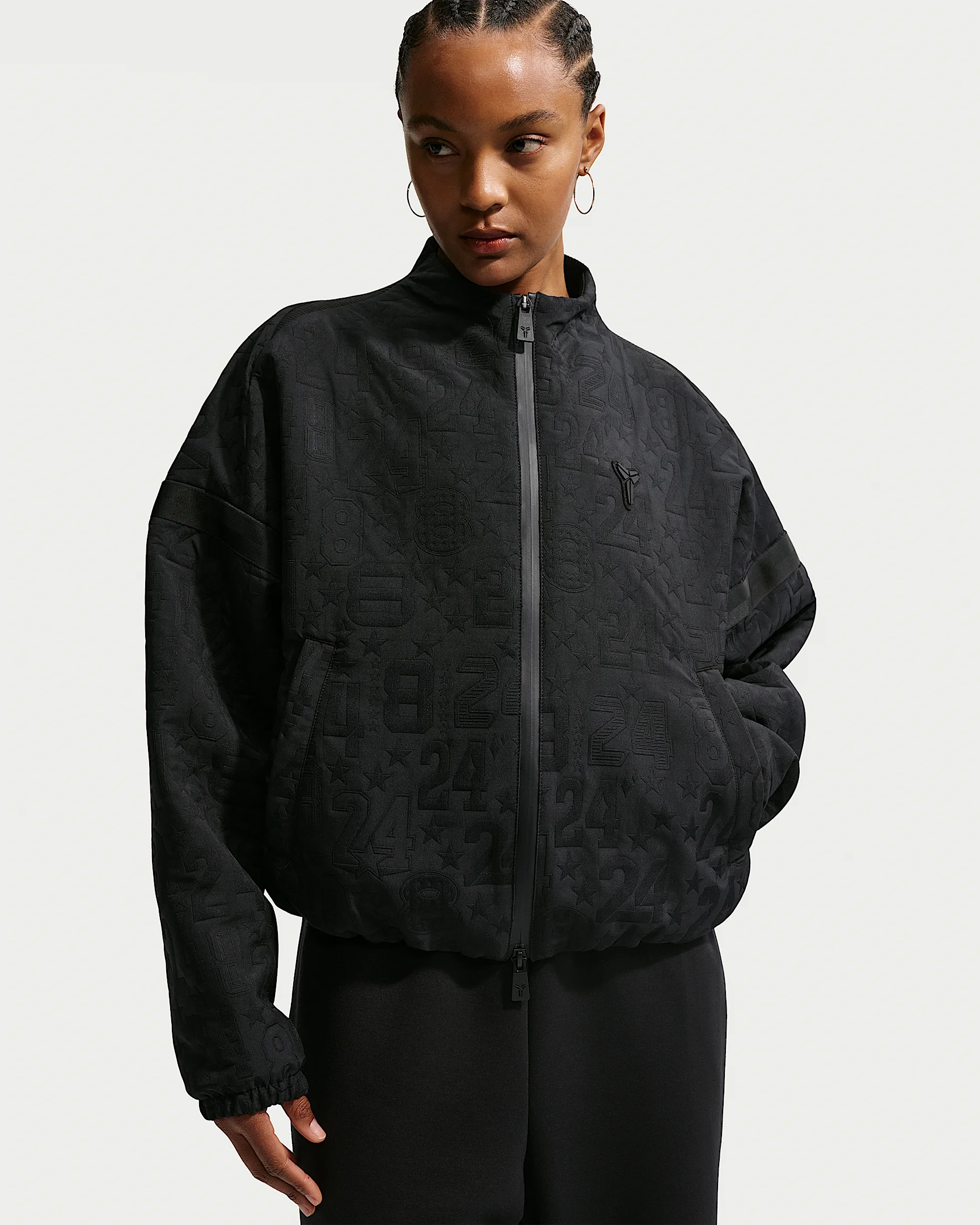 Every time Kobe stepped foot on the game’s biggest midseason stage, he put on a show, whether he was rocking #8 or #24. Entertain? Inspire? Of course. But Kobe wanted to compete. And win. This jacket celebrates his status donning both digits throughout his star-studded career. Product Details - Locker loop - Body: 100% polyester. Lining: 100% nylon. - Machine wash - Imported - Shown: Black/Black - Style: IR0732-010 SIZE & FIT Model is wearing size S and is 5′7″170cm Oversized fit: exaggerated and spacious