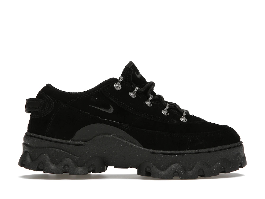 The Nike Lahar Low Black W is constructed of leather and incorporates details taken from the 1989 Lahar Escape Boot. This women's low-top comes in a black suede upper fastened by rope laces that are woven through eyelets made of shining metal. On the lateral side panel and its tongue and heel tab features a tonal mini swoosh while its heel tab has a Nike wordmark printed on it. The lightly speckled sole unit is enhanced with Nike Air cushioning in the heel and boasts a grip pattern, rounding off its design. This Nike Lahar Low Black W released on 6th January 2021 retailed at the price of $130. - Style DB9953-001 - Colorway Black/Black/Black - Retail Price 130 - Release Date 2021-01-06 - Featured false
