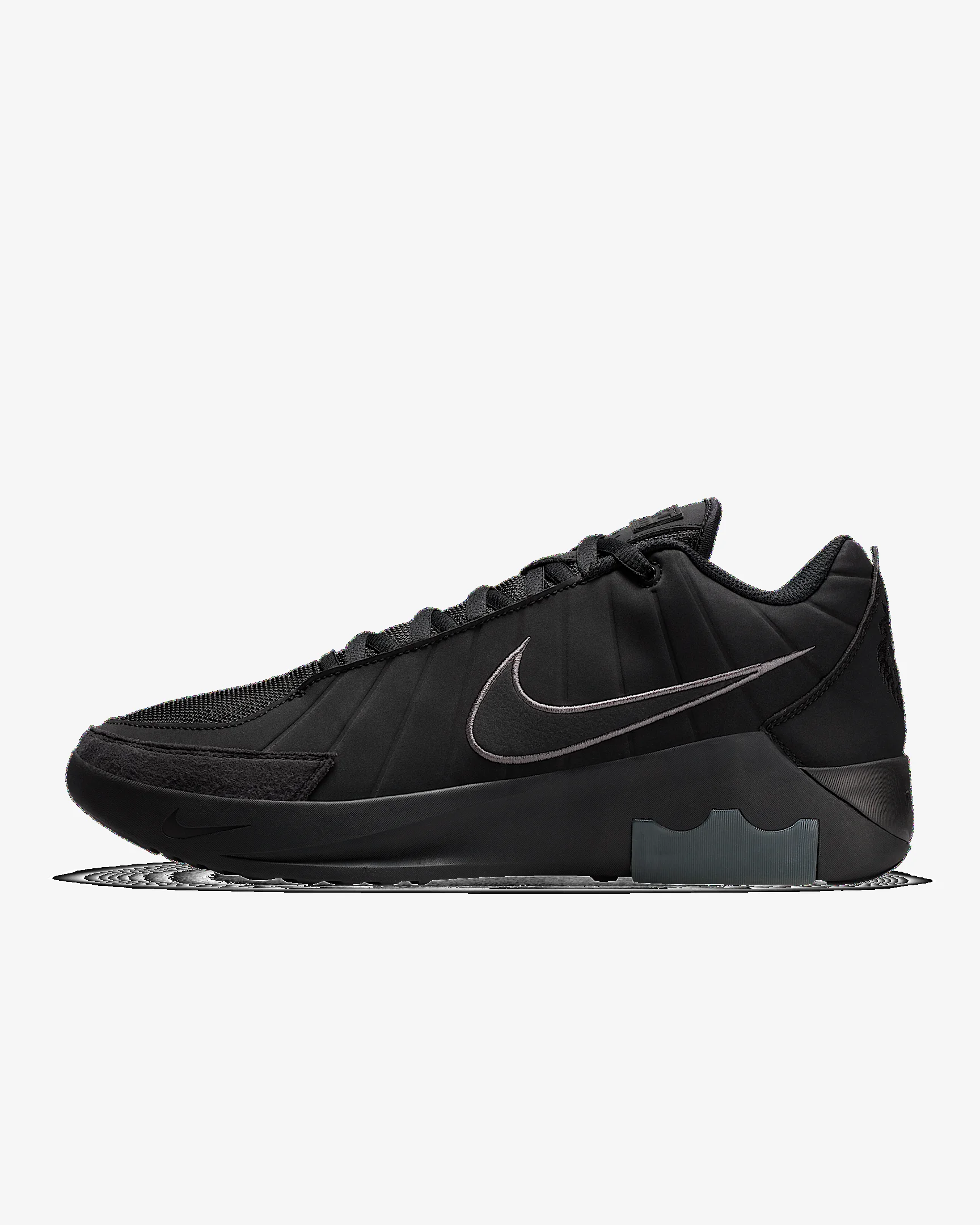 When LeBron needs to reach deep into his seemingly endless well of stamina, he wants a shoe that can help him stay energized for 40 minutes or more. With a full-length responsive ReactX midsole keeping him spry, the LeBron Witness 9 can help The King cross the finish line, fresh. The new ride complements a sleek, versatile design. More Benefits - Supportive lacing and webbing offer a secure fit. - Perforations in high-wear areas like the Swoosh logo toe offer optimal ventilation. Product Details - Shown: Black/Iron Grey/Black - Style: II7520-001
