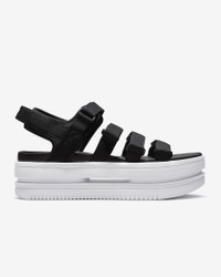 Lifted. Classic hoops detailing. Strappy but easy to wear. Check all the boxes in the Nike Icon Classic. Its big, bold midsole wows with comfort. The outsole pattern delivers iconic Air Force 1 vibes, while the multiple hook-and-loop straps add a fearless look. Get ready to shine with this new voice in sandal style. Benefits - Lifted midsole delivers the look you love with the comfort you expect. - Strappy upper features easy-to-adjust hook-and-loop closures that bring an innovative, fresh and fun look straight out of the box. - Classic Air Force 1 detailing on the outsole delivers heritage style, traction and durability. - Foam footbed adds to the comfort. Product Details - Forefoot height: 52mm. Heel height: 54.2mm - Shown: Black/White/White - Style: DH0224-001 SIZE & FIT Fits small; we recommend ordering a fl size up