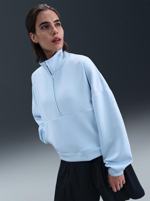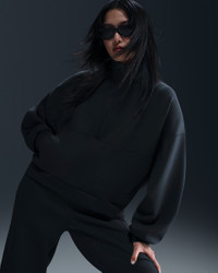 Extraordinarily soft and smooth, our ImpossiblySoft fabric feels made for all-day motion. It's a double-knit material that adds structure to this top while wicking sweat—for comfort that doesn't quit. Benefits - Nike Dri-FIT technology moves sweat away from your skin for quicker evaporation, helping you stay dry and comfortable. - Open front pocket holds your essentials. Product Details - 1/2-length zipper with thin molded pull - Signature locker loop at back of neck - Matte silicone branding on left sleeve - Body: 51% polyester/25% modal/15% cotton/9% spandex. Pocket lining: 100% cotton. - Machine wash - Imported - Shown: Black/Dark Smoke Grey - Style: HQ8188-010 SIZE & FIT Model is wearing size S and is 5′9″175cm Oversized fit: exaggerated and spacious