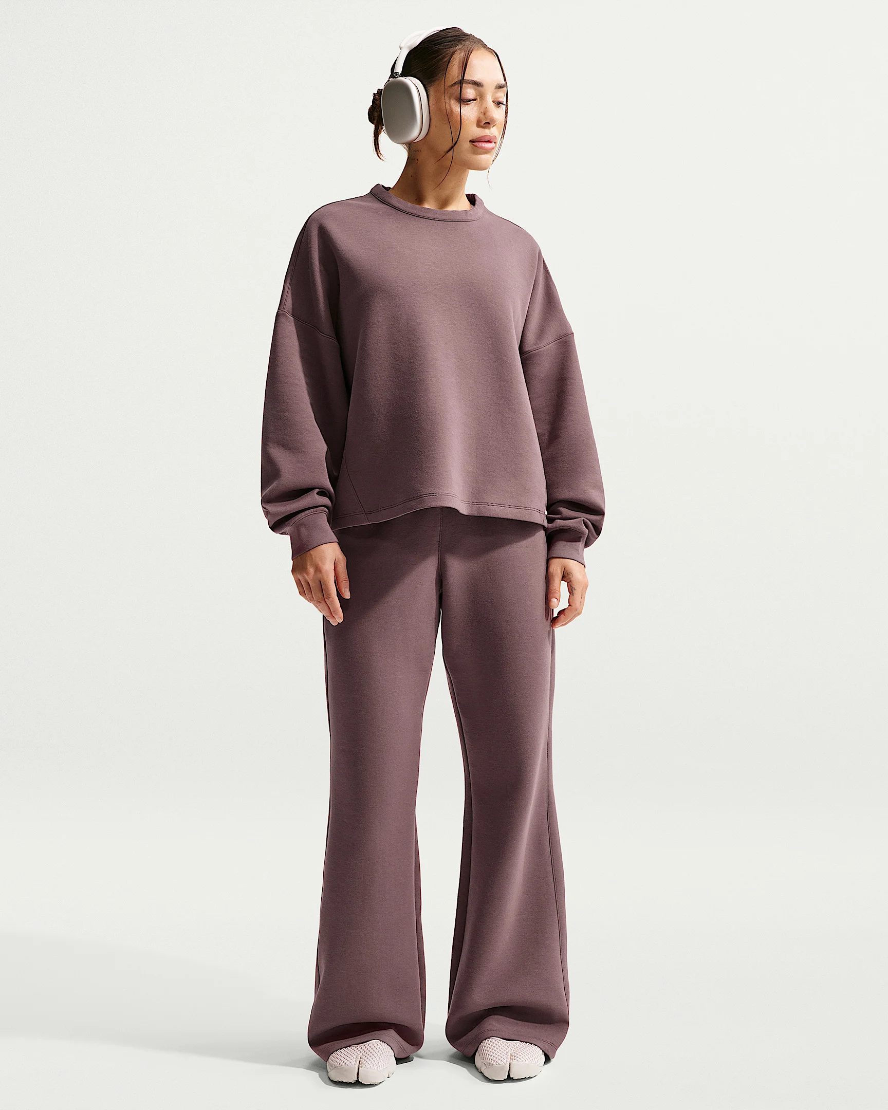 Extraordinarily soft and smooth, our ImpossiblySoft fabric feels made for all-day motion. With a roomy fit and sweat-wicking tech, these pants offer comfort that doesn't quit. Benefits - Nike Dri-FIT technology moves sweat away from your skin for quicker evaporation, helping you stay dry and comfortable. - Elastic waistband is gathered in back for dynamic stretch. Product Details - Signature locker loop at left hip - Matte silicone branding on left side seam - Hand pockets - Body: 51% polyester/25% modal/15% cotton/9% spandex. Pocket bags: 100% cotton. - Machine wash - Imported - Shown: Tattoo/Burgundy Crush - Style: HQ8607-502 SIZE & FIT Model is wearing size S and is 5′6″168cm Loose fit: roomy and relaxed Fl length: hits below ankle