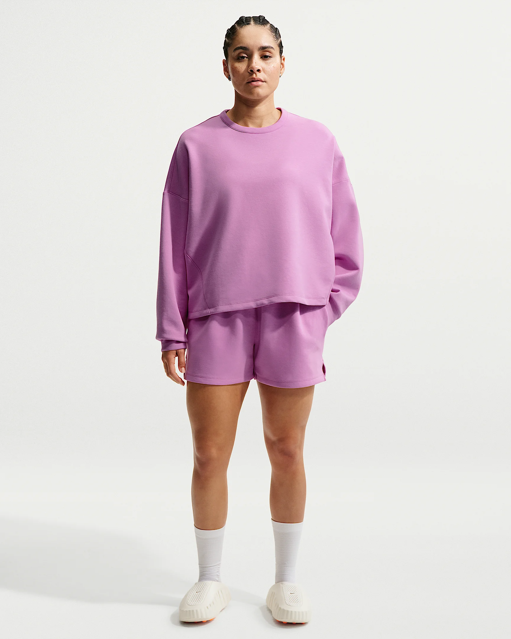 Extraordinarily soft and smooth, our ImpossiblySoft fabric feels made for all-day motion. With sweat-wicking tech and a loose fit, these shorts give you comfort through all your moves. Benefits - Nike Dri-FIT technology moves sweat away from your skin for quicker evaporation, helping you stay dry and comfortable. - Elastic waistband is gathered in back for dynamic stretch. Product Details - Signature locker loop on left hip - Matte silicone branding on left hip - Side vents - Body: 51% polyester/25% modal/15% cotton/9% spandex. Pocket bags: 100% cotton. - Machine wash - Imported - Shown: Light Magenta/Desert Berry - Style: HQ8179-503 SIZE & FIT Model is wearing size S and is 5′6″168cm Loose fit: roomy and relaxed
