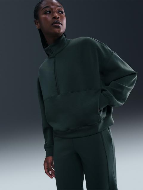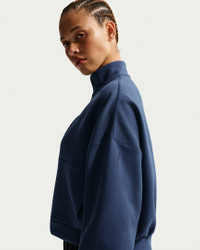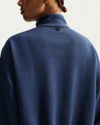 Extraordinarily soft and smooth, our ImpossiblySoft fabric feels made for all-day motion. It's a double-knit material that adds structure to this top while wicking sweat—for comfort that doesn't quit. Benefits - Nike Dri-FIT technology moves sweat away from your skin for quicker evaporation, helping you stay dry and comfortable. - Open front pocket holds your essentials. Product Details - 1/2-length zipper with thin molded pull - Signature locker loop at back of neck - Matte silicone branding on left sleeve - Body: 51% polyester/25% modal/15% cotton/9% spandex. Pocket lining: 100% cotton. - Machine wash - Imported - Shown: Midnight Navy/Dark Obsidian - Style: HQ8188-410 SIZE & FIT Model is wearing size S and is 5′10″178cm Oversized fit: exaggerated and spacious Fits large; we recommend ordering a size down