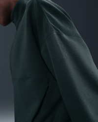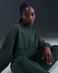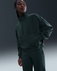 Extraordinarily soft and smooth, our ImpossiblySoft fabric feels made for all-day motion. It's a double-knit material that adds structure to this top while wicking sweat—for comfort that doesn't quit. Benefits - Nike Dri-FIT technology moves sweat away from your skin for quicker evaporation, helping you stay dry and comfortable. - Open front pocket holds your essentials. Product Details - 1/2-length zipper with thin molded pull - Signature locker loop at back of neck - Matte silicone branding on left sleeve - Body: 51% polyester/25% modal/15% cotton/9% spandex. Pocket lining: 100% cotton. - Machine wash - Imported - Shown: Seaweed/Black Spruce - Style: HQ8188-390 SIZE & FIT Model is wearing size S and is 5′8″173cm Oversized fit: exaggerated and spacious Fits large; we recommend ordering a size down