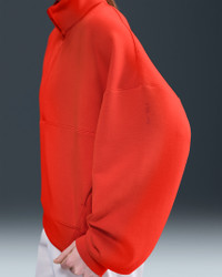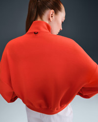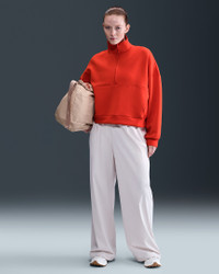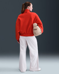 Extraordinarily soft and smooth, our ImpossiblySoft fabric feels made for all-day motion. It's a double-knit material that adds structure to this top while wicking sweat—for comfort that doesn't quit. Benefits - Nike Dri-FIT technology moves sweat away from your skin for quicker evaporation, helping you stay dry and comfortable. - Open front pocket holds your essentials. Product Details - 1/2-length zipper with thin molded pull - Signature locker loop at back of neck - Matte silicone branding on left sleeve - Body: 51% polyester/25% modal/15% cotton/9% spandex. Pocket lining: 100% cotton. - Machine wash - Imported - Shown: Picante Red/Mystic Red - Style: HQ8188-633 SIZE & FIT Model is wearing size S and is 5′7″170cm Oversized fit: exaggerated and spacious Fits large; we recommend ordering a size down