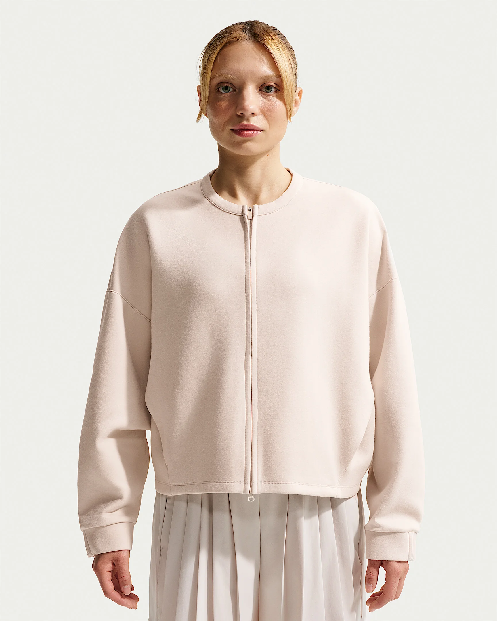 Extraordinarily soft and smooth, our ImpossiblySoft fabric feels made for all-day motion. It's a double-knit material that adds structure to this top while wicking sweat—for comfort that doesn't quit. Benefits - Nike Dri-FIT technology moves sweat away from your skin for quicker evaporation, helping you stay dry and comfortable. - Extraordinarily soft and smooth, our ImpossiblySoft fabric feels made for all-day motion. - Oversized fit for a spacious feel and easy layering. Product Details - Full-length 2-way zipper with thin molded pull - Signature locker loop at back of neck - Matte silicone branding on left sleeve - Body: 51% polyester/25% modal/15% cotton/9% spandex. Pocket lining: 100% cotton. - Machine wash - Imported - Shown: Light Orewood Brown/Light Orewood Brown/Light Iron Ore - Style: II5325-104 SIZE & FIT Model is wearing size S and is 5′10″178cm Oversized fit: exaggerated and spacious