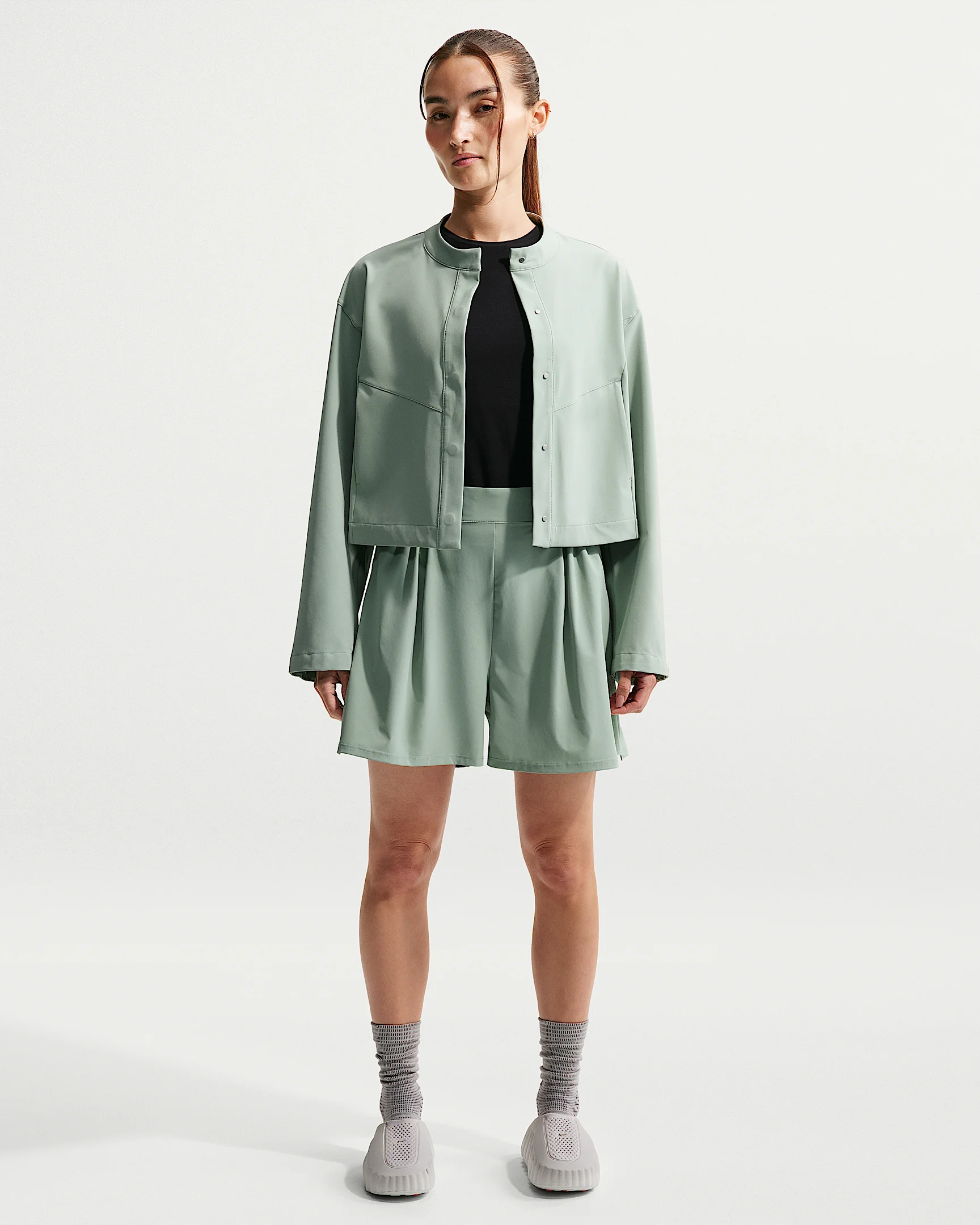 Lightweight and tailored with four-way stretch, our PerfectStretch fabric is designed to keep up with you all day long. These pleated shorts offer elevated coverage and comfort that works for all the moves you make. Benefits - Nike Dri-FIT technology moves sweat away from your skin for quicker evaporation, helping you stay dry and comfortable. - Elastic waistband offers a secure fit and mesh side vents offer breathability. - This product provides UVA and UVB protection from the sun in the areas covered by the garment. To protect exposed areas, the use of good quality sunscreen is recommended. Product Details - 4" inseam - Signature locker loop on left hip - Body: 83% polyester/17% spandex. Mesh: 91% polyester/9% spandex. - Machine wash - Imported - Shown: Steam/Steam/Dutch Green - Style: IB9184-006 SIZE & FIT Standard fit: easy and traditional