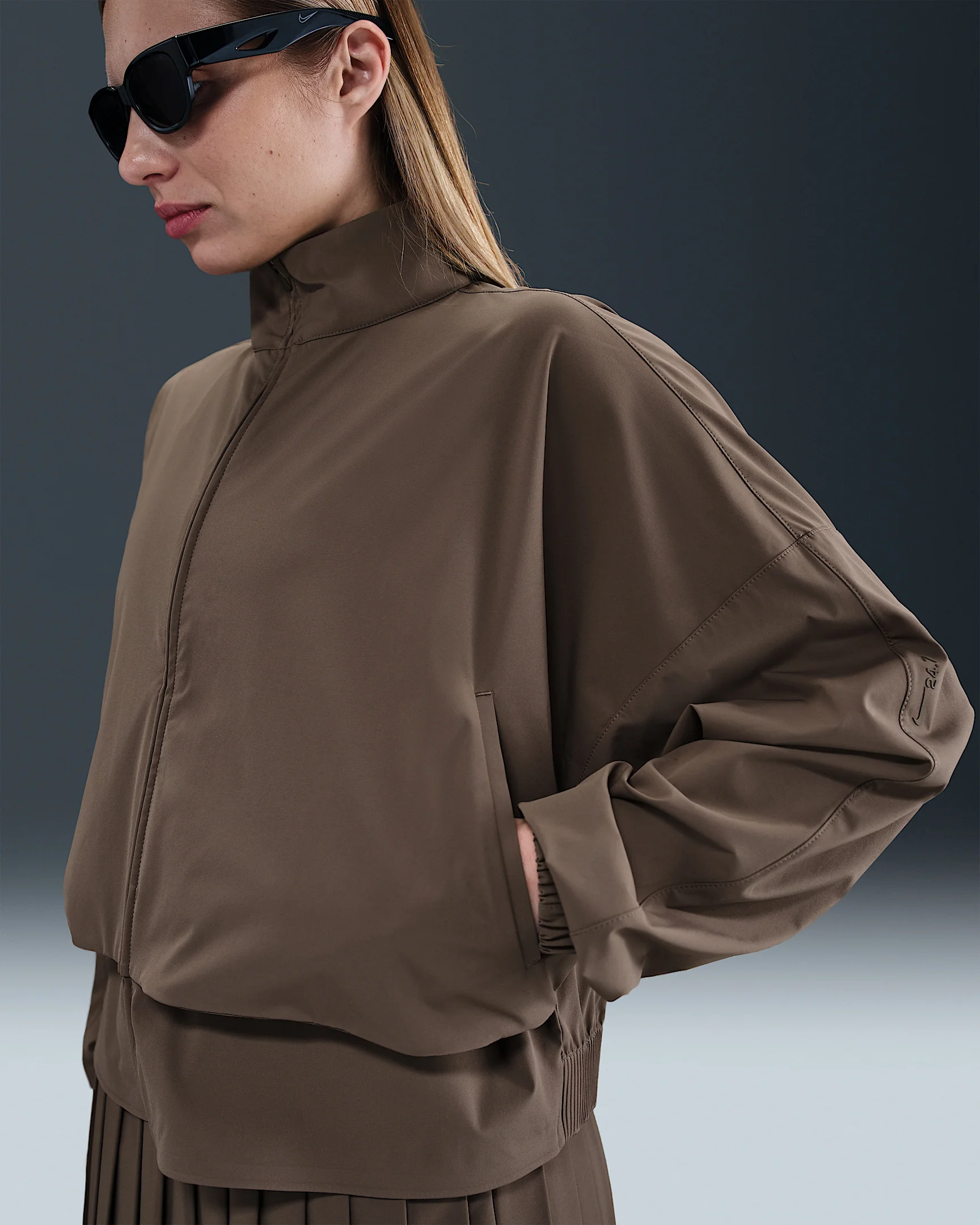 Lightweight and tailored with four-way-stretch, our PerfectStretch fabric is designed to keep up with you all day long. With sweat-wicking tech and a large front vent for breathability, this jacket gives you comfort that doesn't quit. Benefits - Nike Dri-FIT technology moves sweat away from your skin for quicker evaporation, helping you stay dry and comfortable. - Elastic hem is gathered in back for dynamic stretch. Product Details - Signature locker loop at back collar - Encased elastic at cuffs - Body: 83% polyester/17% spandex. Mesh: 91% polyester/9% spandex. - Machine wash - Imported - Shown: Ironstone/Baroque Brown - Style: HJ0963-004 SIZE & FIT Model is wearing size S and is 5′10″178cm Oversized fit: exaggerated and spacious