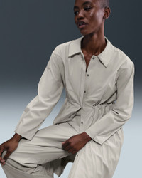 Lightweight and tailored with four-way stretch, our PerfectStretch fabric is designed to keep up with you all day long. A discreet bungee at the waist of this jacket lets you cinch for comfort and a personalized fit. Benefits - Nike Dri-FIT technology moves sweat away from your skin for quicker evaporation, helping you stay dry and comfortable. - Slit at back allows you to move freely. Product Details - Signature locker loop at back of neck - Front pockets - Full snap closure - Side pleats - Body: 83% polyester/17% spandex. Mesh: 91% polyester/9% spandex. Sleeve lining: 100% polyester. - Machine wash - Imported - Shown: Light Orewood Brown/Light Iron Ore - Style: HV3627-104 SIZE & FIT Model is wearing size S and is 5′11″180cm Oversized fit: exaggerated and spacious