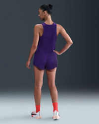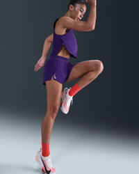 One more step—then another one—and another. With advanced engineering and lightweight moisture-wicking fabric, these shorts make it easier for you to stay focused on your stride. Split sides give you optimal freedom while an evolved brief liner offers smooth and comfortable coverage. Benefits - Nike Dri-FIT ADV technology combines moisture-wicking fabric with advanced engineering and features to help you stay dry and comfortable. - Mesh elastic waistband with internal drawcord provides breathability and a secure fit. - Updated brief liner has smooth seams for comfortable coverage. - Store your card, key or protein pouch in any of 3 internal drop-in pockets. Product Details - Pleated back - Body: 86% polyester/14% spandex. Waistband: 89% polyester/11% spandex. Brief: 88% polyester/12% spandex. Gusset lining: 88% polyester/12% spandex. - Machine wash - Imported - Reflective elements - Not intended for use as Personal Protective Equipment (PPE) - Shown: Court Purple/White - Style: FN2328-547 SIZE & FIT Standard fit: easy and traditional Fits small; we recommend ordering a size up<br>
