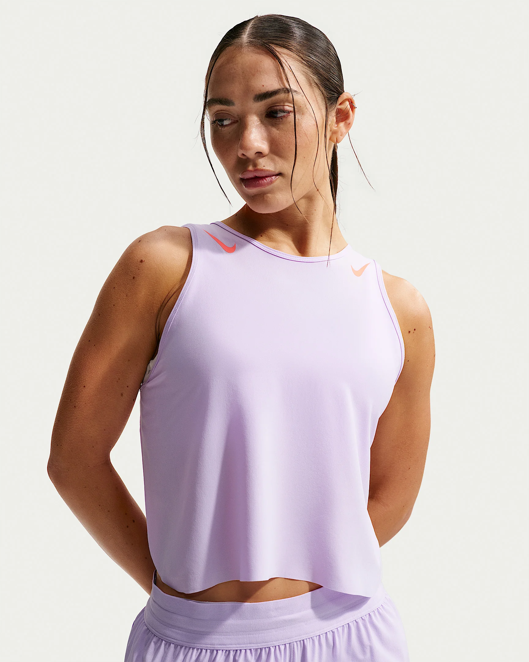 Perform your best in this slim-fitting tank top designed with your goals in mind. Advanced engineering and lightweight moisture-wicking fabric help keep you dry and cool as you push the limits. Side slits offer plenty of airflow so you can feel the breeze and focus on your stride. Benefits - Nike Dri-FIT ADV technology combines moisture-wicking fabric with advanced engineering and features to help you stay dry and comfortable. - Side slits offer more freedom in your movements. Product Details - Pleated back - 86% polyester/14% spandex - Machine wash - Imported - Shown: Violet Mist/Hot Lava - Style: FN2713-511 SIZE & FIT Model is wearing size S and is 5′6″168cm Sm fit: sleek and tailored