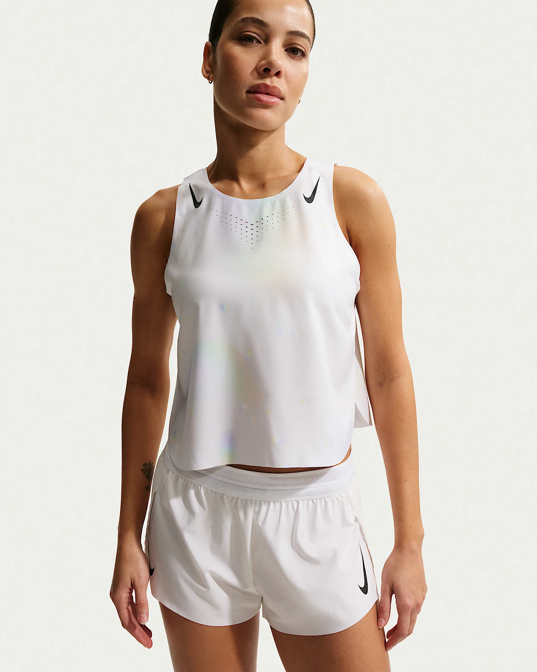 Designed with a prize in mind, this race-ready top helps keep you dry and comfortable as you cross the finish line. It’s sweat-wicking, breathable and elevated with a print inspired by the dazzling gleam of a diamond trophy. Benefits - Nike Dri-FIT ADV levels up our sweat-wicking technology with advanced cooling and zones of breathability to help you stay dry and comfortable. - Lightweight woven fabric has perforated sections to enhance breathability in high-sweat areas. - Bonded seams at neck and armholes offer a smooth comfortable feel and unrestricted movement. - Side slits provide optimal airflow. Product Details - 100% polyester - Machine wash - Imported - Shown: Off White/Black - Style: IF3647-101 SIZE & FIT Model is wearing size S and is 5′9″175cm Sm fit: sleek and tailored
