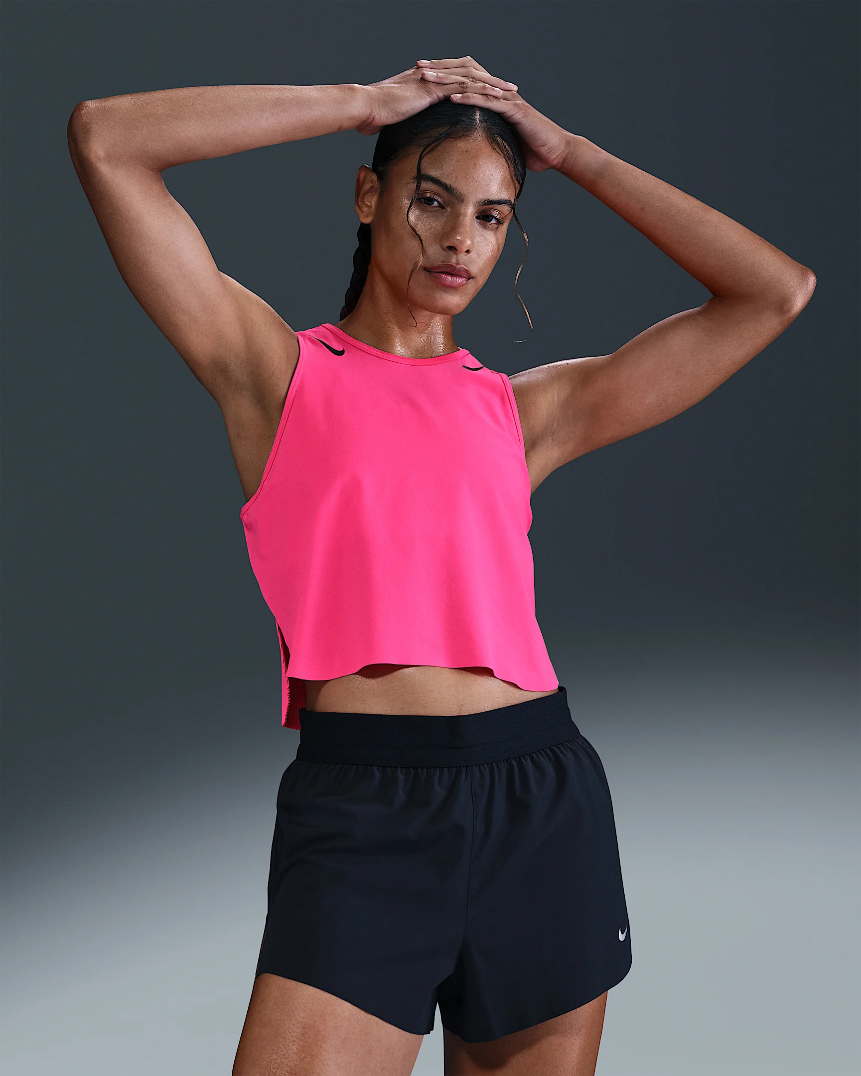 Perform your best in this slim-fitting tank top designed with your goals in mind. Advanced engineering and lightweight moisture-wicking fabric help keep you dry and cool as you push the limits. Side slits offer plenty of airflow so you can feel the breeze and focus on your stride. Benefits - Nike Dri-FIT ADV technology combines moisture-wicking fabric with advanced engineering and features to help you stay dry and comfortable. - Side slits offer more freedom in your movements. Product Details - Pleated back - 86% polyester/14% spandex - Machine wash - Imported - Shown: Hyper Pink/Black - Style: FN2713-645 SIZE & FIT Model is wearing size S and is 5′10″178cm Sm fit: sleek and tailored