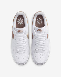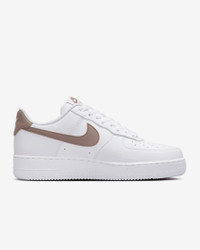 The radiance lives on in the Air Force 1 ’07, the b-ball icon that puts a fresh spin on what you know best: crisp materials, bold colors and the perfect amount of flash to make you shine. Benefits - Upper softens and gains vintage character with wear. - Originally designed for performance hoops, Nike Air cushioning adds lightweight comfort. - Rubber sole with star pattern provides durability and traction. - Padded, low-cut collar looks sleek and feels great. Product Details - Stitched overlays - Foam midsole - Perforations on toe - Shown: White/Mink Brown - Style: DC9486-108
