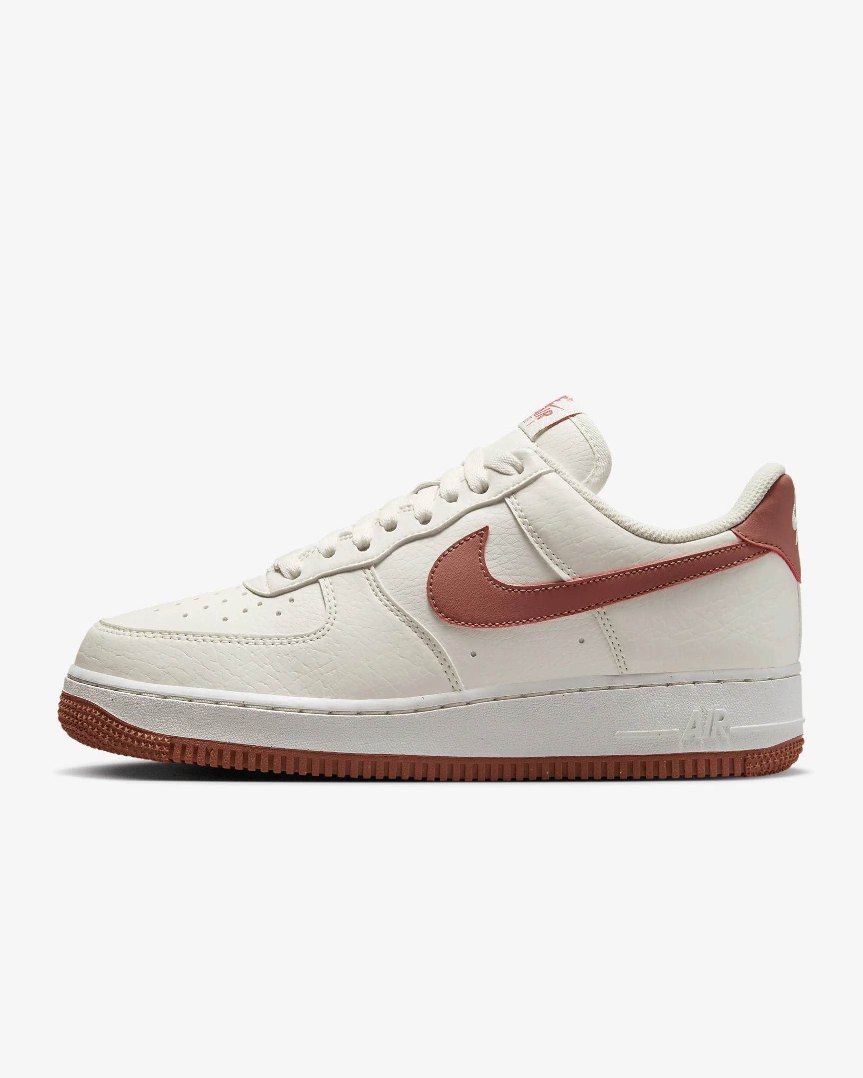 The radiance lives on in the Air Force 1 ’07, the b-ball icon that puts a fresh spin on what you know best: crisp materials, bold colors and the perfect amount of flash to make you shine. Benefits - Upper softens and gains vintage character with wear. - Originally designed for performance hoops, Nike Air cushioning adds lightweight comfort. - Rubber sole with star pattern provides durability and traction. - Padded, low-cut collar looks sleek and feels great. Product Details - Stitched overlays - Foam midsole - Perforations on toe - Shown: Sail/Canyon Pink - Style: DC9486-105