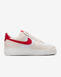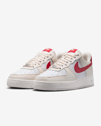 The radiance lives on in the Air Force 1 ’07, the b-ball icon that puts a fresh spin on what you know best: crisp materials, bold colors and the perfect amount of flash to make you shine. Benefits - Upper softens and gains vintage character with wear. - Originally designed for performance hoops, Nike Air cushioning adds lightweight comfort. - Rubber sole with star pattern provides durability and traction. - Padded, low-cut collar looks sleek and feels great. Product Details - Stitched overlays - Foam midsole - Perforations on toe - Shown: Pale Ivory/White/Sail/University Red - Style: DC9486-109