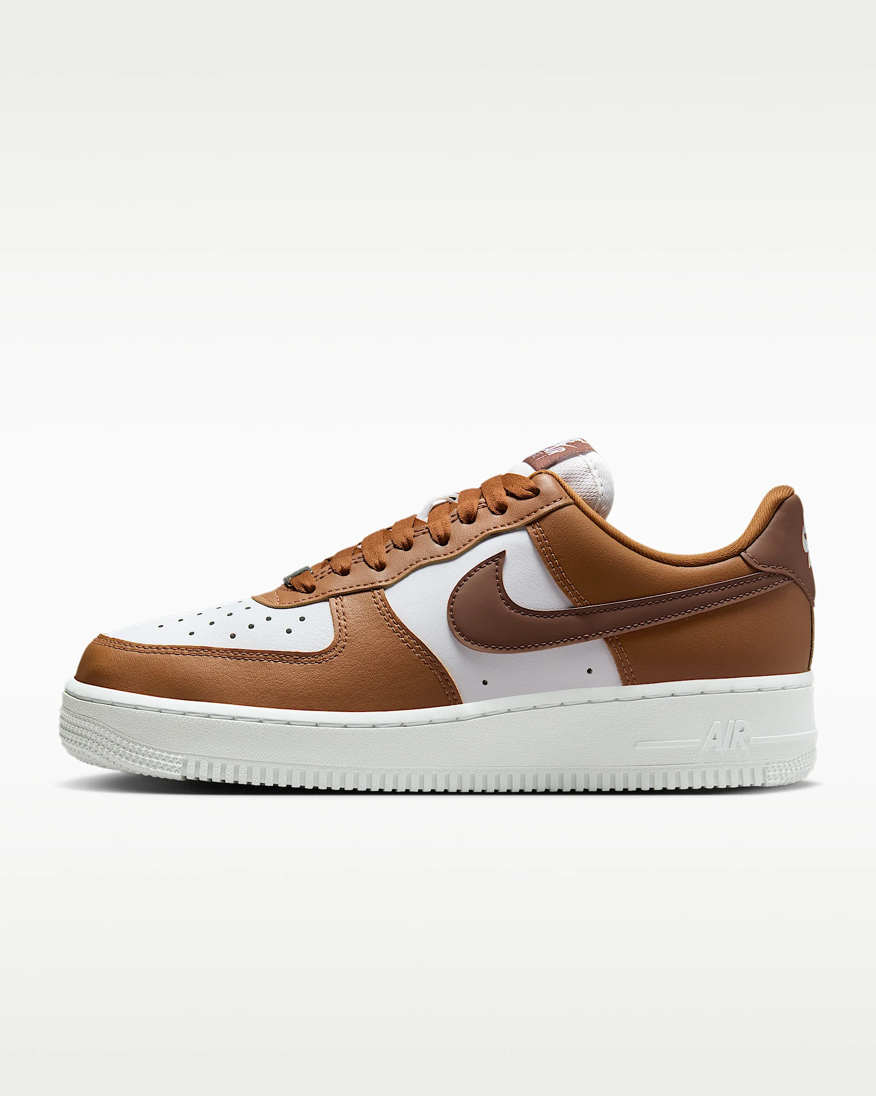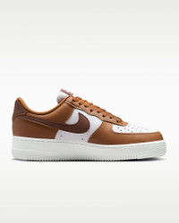 Comfortable, durable and timeless—it’s number one for a reason. The Air Force 1 pairs its classic silhouette with premium leather for a crisp, clean look. Benefits - Leather upper with perforated toe box is breathable and comfortable. - Nike Air unit provides lightweight cushioning. - Rubber outsole with classic pivot circles delivers traction and durability. Product Details - Low-cut silhouette - Padded collar - Foam midsole - Shown: Hazelnut/White/Metallic Silver/Fauna Brown - Style: IM6364-200