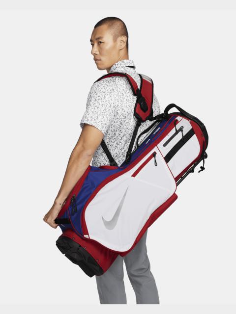Enjoy the green in ultimate comfort with the Nike Air Hybrid Golf Bag. This durable, lightweight design features a detachable, anatomically correct Nike Equaflex Max Air dual strap for a balanced feel while carrying. If you prefer to ride, a strap-through design makes it easy to secure to the cart. A 14-way divider helps you stay organized while a water-resistant rain hood offers coverage on the course in wet weather. Benefits - Aluminum construction is lightweight and durable. - An insulated pocket helps keep food and beverages cold on hot days. Product Details - 100% polyester - Spot clean - Imported - Shown: White - Style: N1003478-124