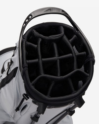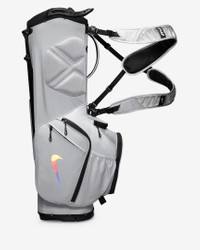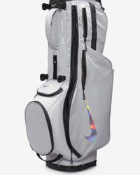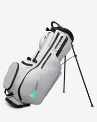 Enjoy the green in ultimate comfort with the Nike Air Hybrid Golf Bag. This durable, lightweight design features a detachable, anatomically correct Nike Equaflex Max Air dual strap for a balanced feel while carrying. If you prefer to ride, a strap-through design makes it easy to secure to the cart. A 14-way divider helps you stay organized while a water-resistant rain hood offers coverage on the course in wet weather. Benefits - Aluminum construction is lightweight and durable. - An insulated pocket helps keep food and beverages cold on hot days. Product Details - 100% polyester - Spot clean - Imported - Shown: Wolf Grey - Style: N1003478-083