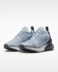 The Air Max 270 brings style, comfort and big attitude. The design draws inspiration from Air Max icons, showcasing Nike's greatest innovation with its large cushioning window and fresh array of colors. Benefits - Woven fabric on the upper provides a lightweight fit and airy feel. - Plush and comfortable, Max Air cushioning has just the right amount of support. - Inner sleeve stretches for a personalized fit. - Rubber outsole adds traction and durability. Product Details - Mesh details - Foam midsole - Shown: Blue Tint/White/Ashen Slate - Style: HJ3222-400
