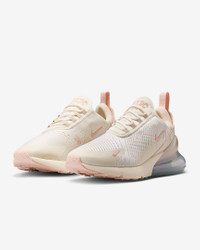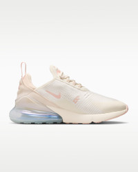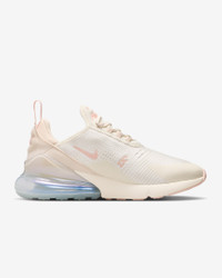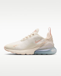 Nike's first lifestyle Air Max brings you style, comfort and big attitude. Drawing inspiration from Air Max icons, the Nike Air Max 270 showcases Nike's greatest innovation with its large window and fresh array of colors. Benefits - Max Air 270 unit delivers all-day comfort. - Woven and synthetic fabric on the upper provides a lightweight fit and airy feel. - Foam midsole feels soft and comfortable. - Stretchy inner sleeve and bootie-like construction creates a personalized fit. - Rubber on the outsole adds traction and durability. Product Details - Shown: Soft Pearl/Pearl White/Metallic Silver/Washed Coral - Style: IH5966-001