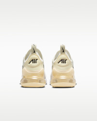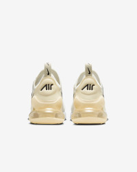 Nike's first lifestyle Air Max brings you style, comfort and big attitude in the Nike Air Max 270. The design draws inspiration from Air Max icons, showcasing Nike's greatest innovation with its large window and fresh array of colors. Benefits - The Max Air 270 unit delivers unrivaled, all-day comfort. - Woven and synthetic fabric on the upper provides a lightweight fit and airy feel. - The foam midsole feels soft and comfortable. - The stretchy inner sleeve and booty-like construction creates a personalized fit. - Rubber on the outsole adds traction and durability. Product Details - Mesh details for an airy feel - Synthetic and textile - Pull tab - Shown: Sail/Coconut Milk/Pale Ivory/Black - Style: AH6789-124 SIZE & FIT Fits small; we recommend ordering a fl size up