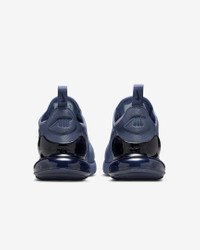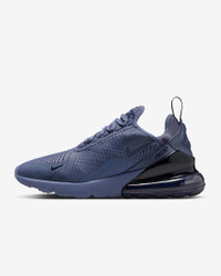 The Air Max 270 brings style, comfort and big attitude. The design draws inspiration from Air Max icons, showcasing Nike's greatest innovation with its large cushioning window and fresh array of colors. Benefits - Woven fabric on the upper provides a lightweight fit and airy feel. - Plush and comfortable, Max Air cushioning has just the right amount of support. - Inner sleeve stretches for a personalized fit. - Rubber outsole adds traction and durability. Product Details - Mesh details - Foam midsole - Shown: World Indigo/World Indigo/Midnight Navy - Style: HJ3222-401