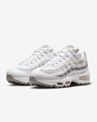 The Air Max 95 originally takes inspiration from the human anatomy, leading to its distinctive wavy design. This version pairs mixed materials and visible Max Air cushioning for a layered look with unbelievable comfort. Benefits - Upper mixes real and synthetic leather, textile and suede for a layered look built to last. - Visible Max Air cushioning provides lightweight cushioning. - Flex grooves in the midsole/outsole let you move freely. - Inspired by the human anatomy, the midsole/outsole represent the spine, upper panels are the muscles and the laces are the shoe’s ribs. Product Details - Foam midsole - Rubber outsole - Not intended for use as Personal Protective Equipment (PPE) - Shown: White/Light Charcoal/Pearl Grey/Silt Red - Style: IB6396-102