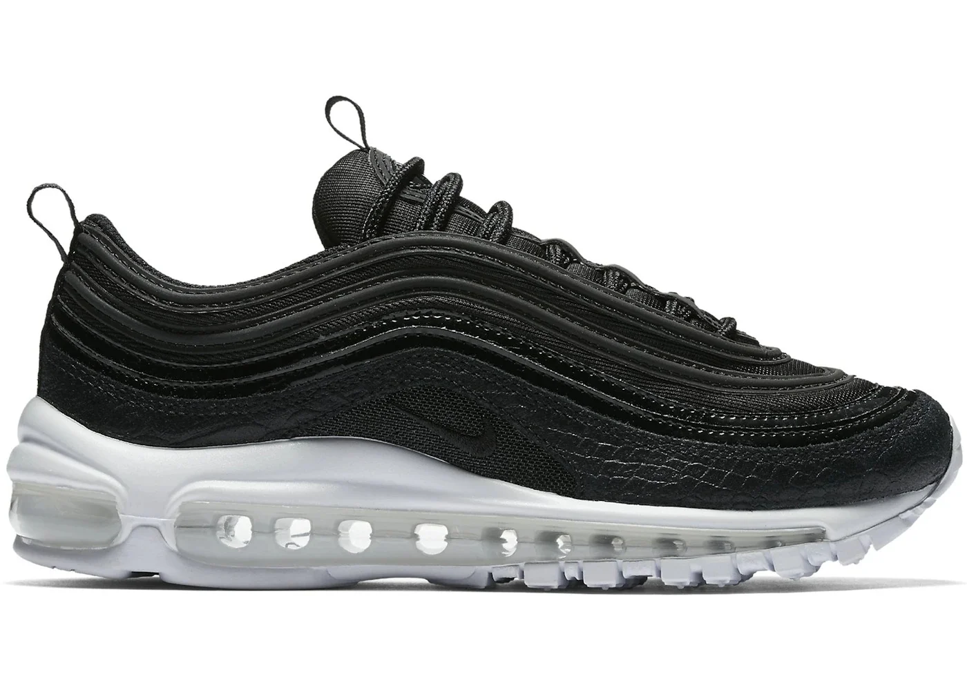 This women's Nike Air Max 97 was a part of Nike Sportswear's Fall 2017 Collection for the classic silhouette. Made to commemorate the 30th Anniversary of the AM 97, this pair comes in a clean black and white colorway. A premium edition, they feature a black-based upper with white accents. Their release date was August 4th, 2017 where they retailed for $170 in women's sizes. If you're a fan of black and white kicks, this Air Max 97 Premium is perfect for you. Hit up the marketplace if you're looking to buy. If you have a pair and wish to sell, check what they're going for online and see if the time to move them is now. - Style 917646-001 - Colorway Black/Black-White - Retail Price 170 - Release Date 2017-08-04 - Featured false - Product Line Nike Air Max