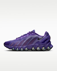 More Air, less bulk. The Dn8 takes our Dynamic Air system and condenses it into a sleek, low-profile package. Powered by eight pressurized Air tubes, it gives you a responsive sensation with every step. Enter an unreal experience of movement. More Benefits - Plastic heel clip helps hold your foot down for more containment. - Extra layer across toe tip adds durability. Product Details - Glossy Swoosh logo - Not intended for use as Personal Protective Equipment (PPE) - Shown: Wild Grape/Metallic Silver/Black/Black - Style: HF5509-500