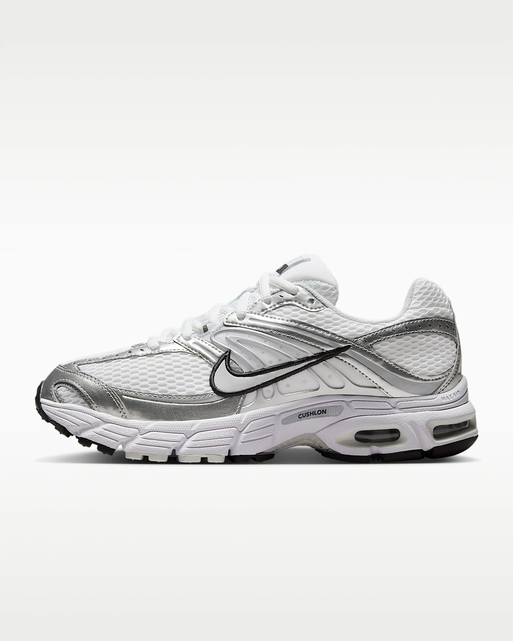 Familiar yet fresh, the Air Max Moto 2K is ready to go for a ride. Metallic accents compliment performance-inspired details and Max Air cushioning. Benefits - Upper mixes synthetic leather and textile for a layered look built to last. - Plush and comfortable, Max Air cushioning has just the right amount of support. - Rubber outsole provides durable traction. Product Details - Shown: White/Metallic Silver/Black/Photon Dust - Style: HQ2056-103