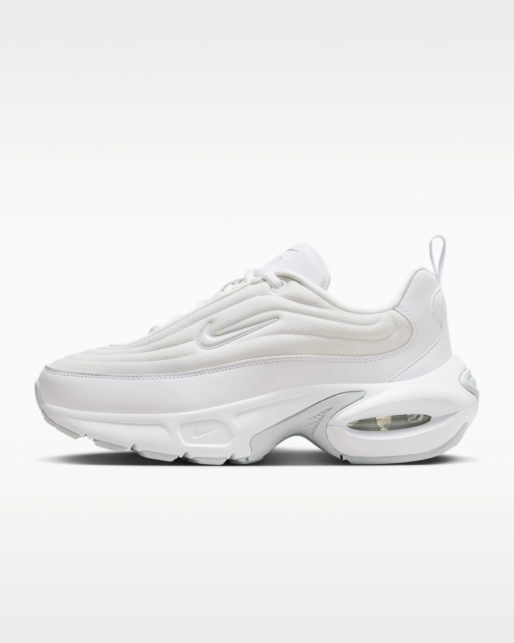 Transport your style with a new Air Max. The Portal is the perfect blend of chunky and sleek, combining the platform sole of 2000s with the minimalist upper of contemporary designs. We added an oval-shaped midsole with cloud-like cushioning for an elevated look you can wear every day. It's so comfortable it's out of this world. Benefits - Quilted material feels plush and looks sleek. - Thick foam midsole with visible Nike Air cushioning in the heel adds just enough height. - Rubber outsole gives you durable traction. - Design details such as the quilted upper and tread take cues from '00s running models. Product Details - Embroidered Swoosh logo - Heel pull tab - Foam midsole - Rubber outsole - Shown: White/Pure Platinum/White - Style: HF3053-100