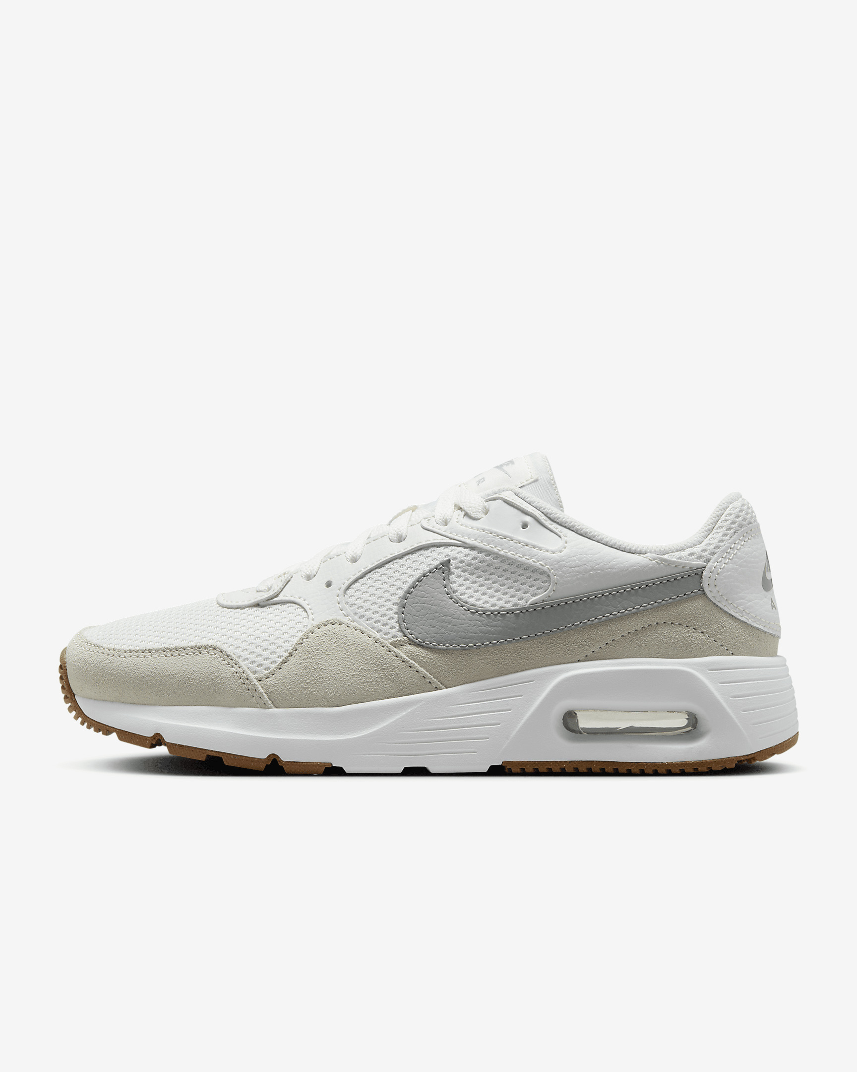 With its easy going lines, heritage track look and of course, visible Air cushioning, the Nike Air Max SC is the perfect finish to any outfit. The rich mixture of materials adds depth while making it a durable and lightweight shoe for everyday wear. Benefits - Leather, textile and mesh combine for a durable construction that's breathable and comfortable to wear all day. - Originally designed for performance running, the Max Air unit delivers lightweight cushioning with every step. - The foam midsole adds cushioning to last. - The rubber outsole provides traction and durability. Product Details - Traditional lacing - Flex grooves in sole let your foot move naturally - Shown: Summit White/White/Gum Medium Brown/Light Pumice - Style: CW4554-121