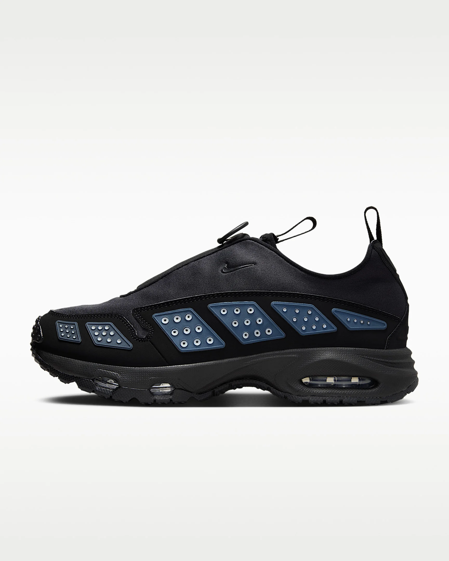 Ahead of its time in '99, the innovative Air Max SNDR is back and louder than ever. From the secure fit around the heel to the zip-up shroud, this legendary sneaker continues to break the mold. It comes equipped with Max Air cushioning in the heel and Nike Air in the forefoot for exceptional bounce and comfort. Unzip the shroud to reveal "6453," a nod to the last 4 digits of Nike's office numbers around the world, which spell out N-I-K-E on the keypad. Benefits - Plush and comfortable, Max Air cushioning has just the right amount of support. - Nike Air technology absorbs impact for cushioning with every step. Product Details - Reflective panels - Foam midsole - Rubber outsole - Not intended for use as Personal Protective Equipment (PPE) - Shown: Black/Silver - Style: FZ2068-001