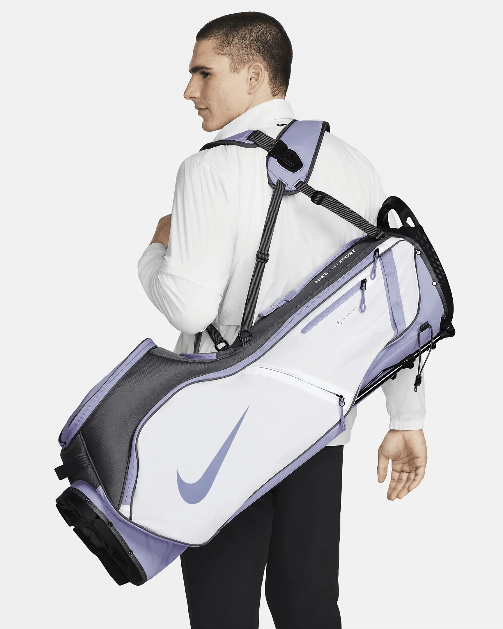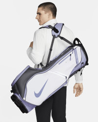 Enjoy your day on the green with the Nike Air Sport 2 Golf Bag. An adjustable strap offers a balanced feel so you can play all 18 holes in comfort. If the weather turns wet, a rain hood helps deflect the elements. Benefits - 4-way, full-length divider system keeps your clubs organized. - Full-length apparel pocket offers additional storage space. - Ball pocket has a zip-off panel so you can customize the look. - Side webbing provides convenient storage for accessories. Product Details - 100% polyester - Spot clean - Imported - Shown: White/Iron Grey - Style: N1003477-124