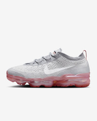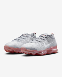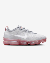Breathe in. Breath out. This Air is better than that. With the first 1-piece Air unit to run the entire length of a shoe, the Air VaporMax 2023 Flyknit lets you walk on unbelievable cushioning. And up top, stretchy and supportive Flyknit keeps it breezy and light. Bonus—it's made with at least 20% recycled materials by weight. Now that's fresh! Benefits - As the first 1-piece Air unit to run the entire length of a shoe, it allows for smoother transitions and adds unbelievable cushioning. - Flyknit upper uses stretchy yarns for a breathable and supportive fit that feels as light as air. - Seamless collar sculpts the ankle for a sporty look that feels great, while padding on heel adds to the comfort. - Translucent rubber outsole adds durability and traction. Product Details - Traditional lacing - Shown: Photon Dust/Wolf Grey/Red Stardust/White - Style: DV6840-006 SIZE & FIT Fits small; we recommend ordering a half size up