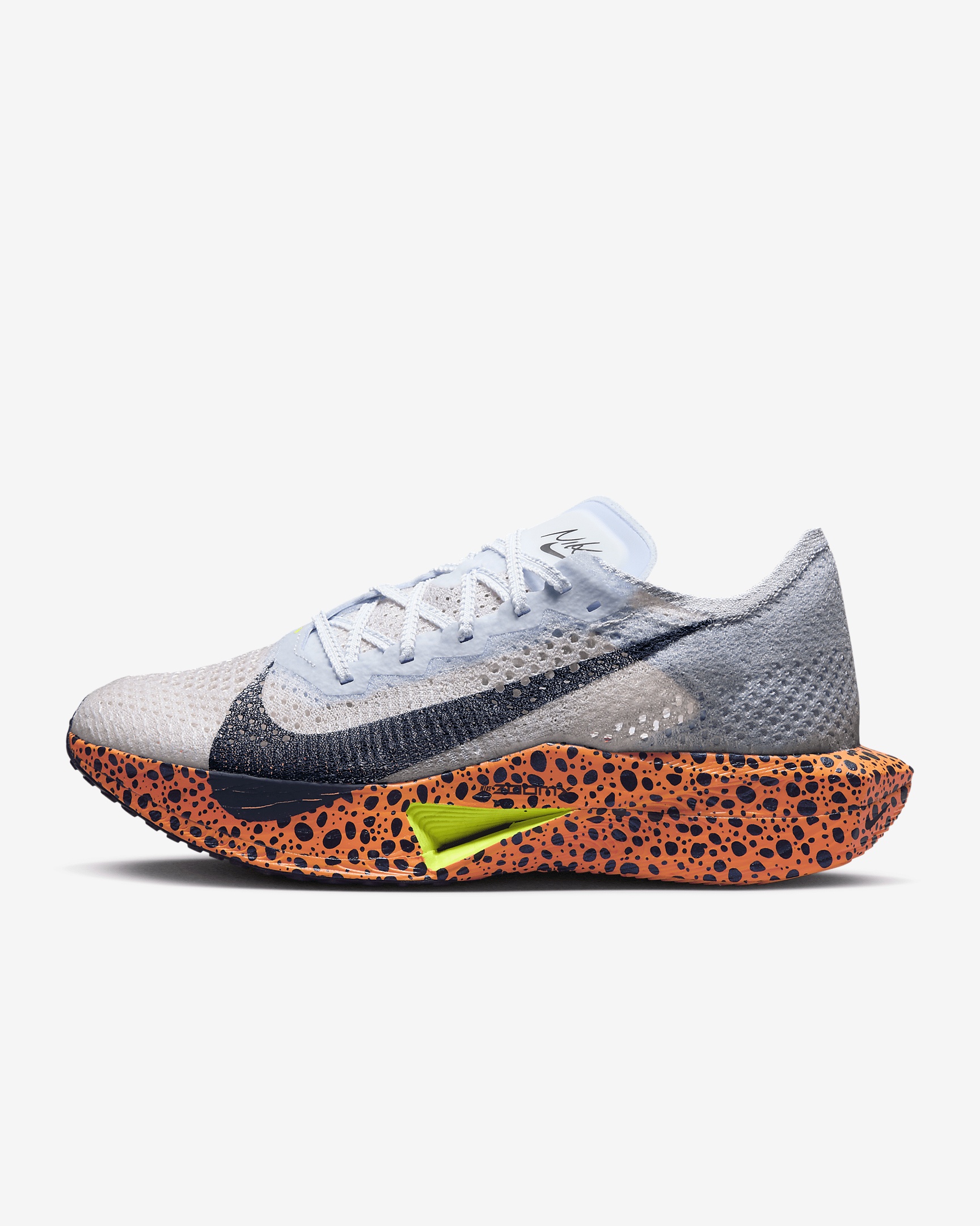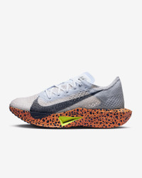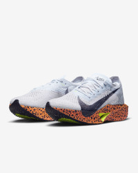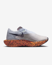 Catch ‘em if you can. Giving you race-day speed to conquer any distance, the Nike Vaporfly 3 is made for those who can’t turn down the thrill of the pursuit. We reworked the leader of the super shoe pack and tuned the engine underneath to help you chase personal bests from a 10K to marathon. From elite runners to those new to racing, this versatile road-racing shoe is for those who see speed as a gateway to more miles and more seemingly uncatchable highs. More Benefits - Light padding on the tongue helps reduce lace pressure at the top of your foot. - A Waffle outsole pattern with perforations saves weight and delivers multi-surface traction in various weather conditions. - Offset heel seam helps reduce friction in the heel area. Product Details - Weight: Approx. 165 g/5.8 oz (Women's US 8) - Heel-to-toe drop: 8 mm - Wider toe area for roomier fit - Internal foam pod at heel for extra cushioning - Shown: Multi-Color/Multi-Color - Style: FN7674-900