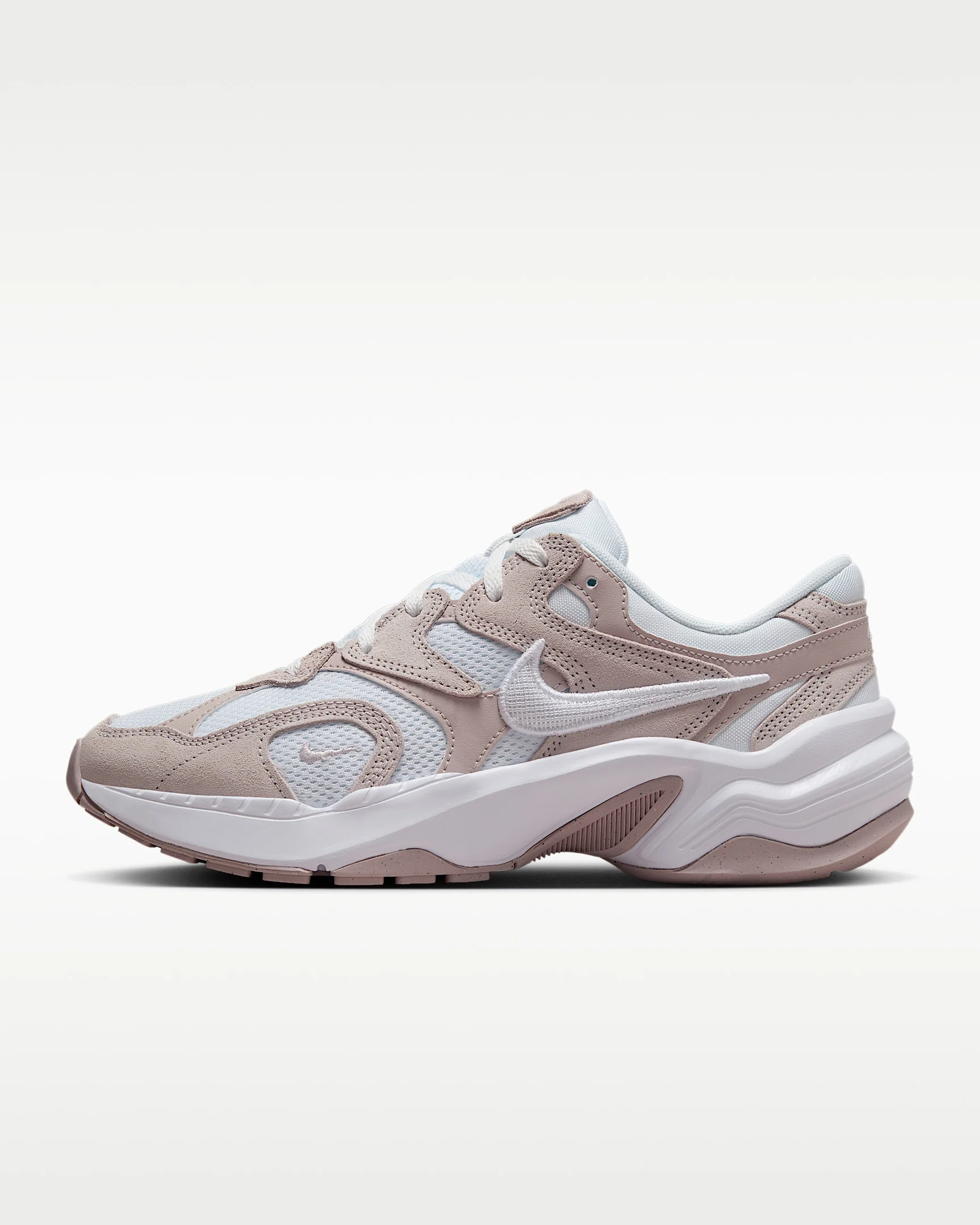 The AL8 is the perfect mix of nostalgia (peep the embroidered Swoosh) and the modern comfort you love. The plush upper combines breathable mesh and a chunky silhouette for a sporty look that's easy to style. Plus, a flexible Waffle sole references retro running shoes while providing the traction you need to go all day. Inspired by the '90s, ready for the future. Benefits - Mesh upper with leather and suede overlays allows breathability without compromising comfort. - Waffle outsole and classic Swoosh logo reference classic Nike running shoes. Product Details - Foam midsole - Rubber outsole - Not intended for use as Personal Protective Equipment (PPE) - Shown: Platinum Violet/Metallic Silver/White - Style: FJ3794-001