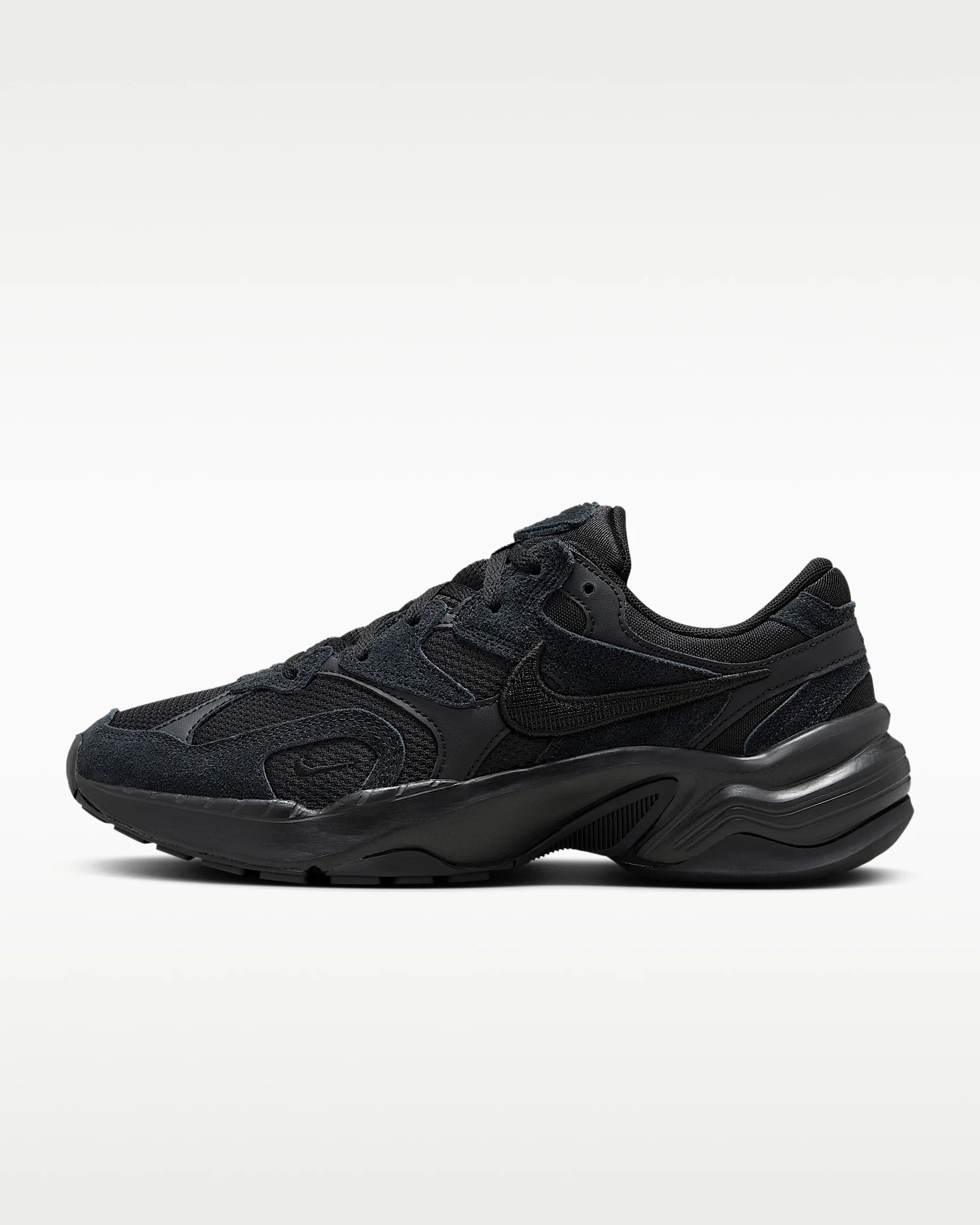 The AL8 is the perfect mix of nostalgia (peep the embroidered Swoosh) and the modern comfort you love. The plush upper combines breathable mesh and a chunky silhouette for a sporty look that's easy to style. Plus, a flexible Waffle sole references retro running shoes while providing the traction you need to go all day. Inspired by the '90s, ready for the future. Benefits - Mesh upper with leather and suede overlays allows breathability without compromising comfort. - Waffle outsole and classic Swoosh logo reference classic Nike running shoes. Product Details - Foam midsole - Rubber outsole - Not intended for use as Personal Protective Equipment (PPE) - Shown: Black/Black - Style: FJ3794-002